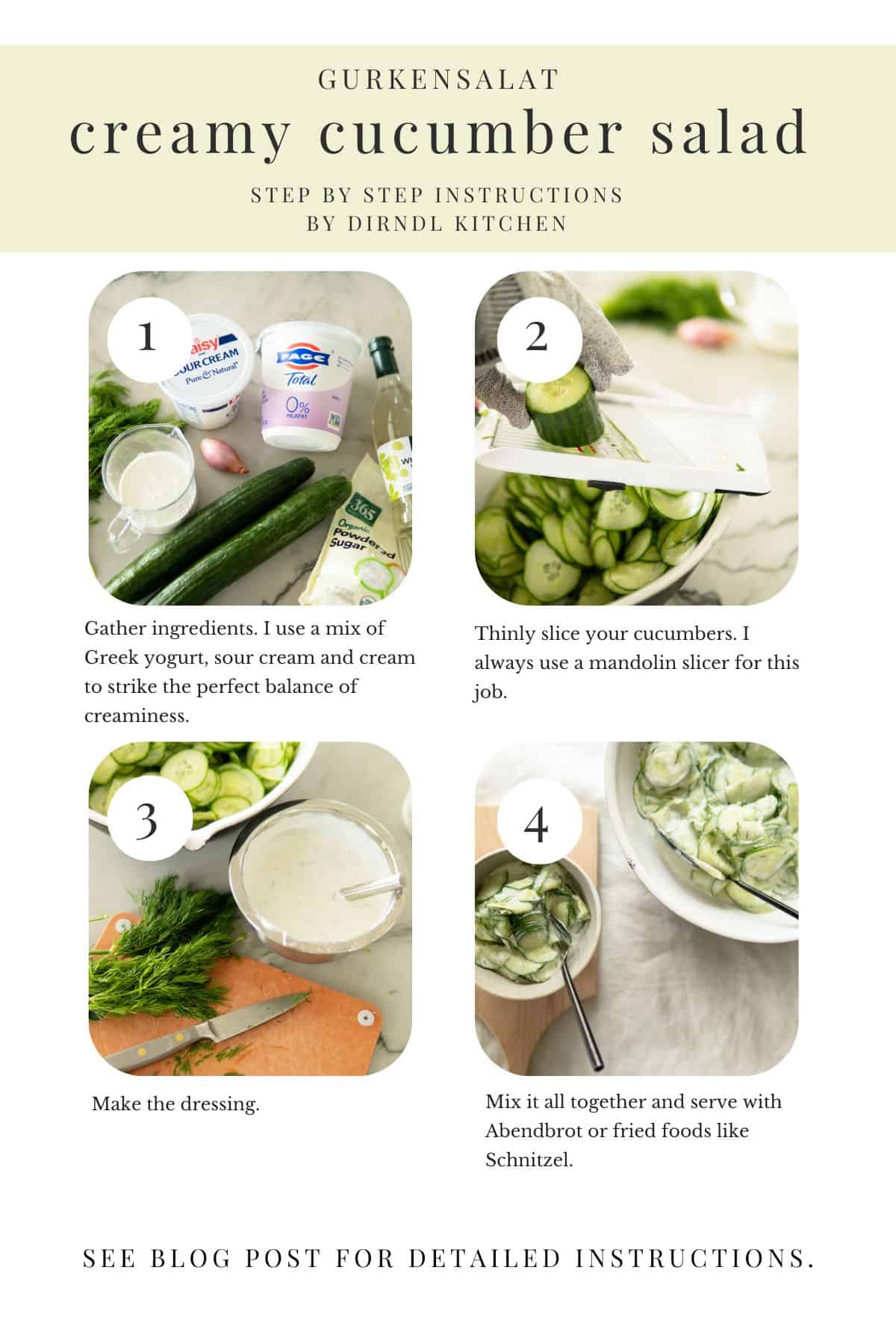 For clearer visuals, check out this short video that shows you how to make this simple German cucumber salad.